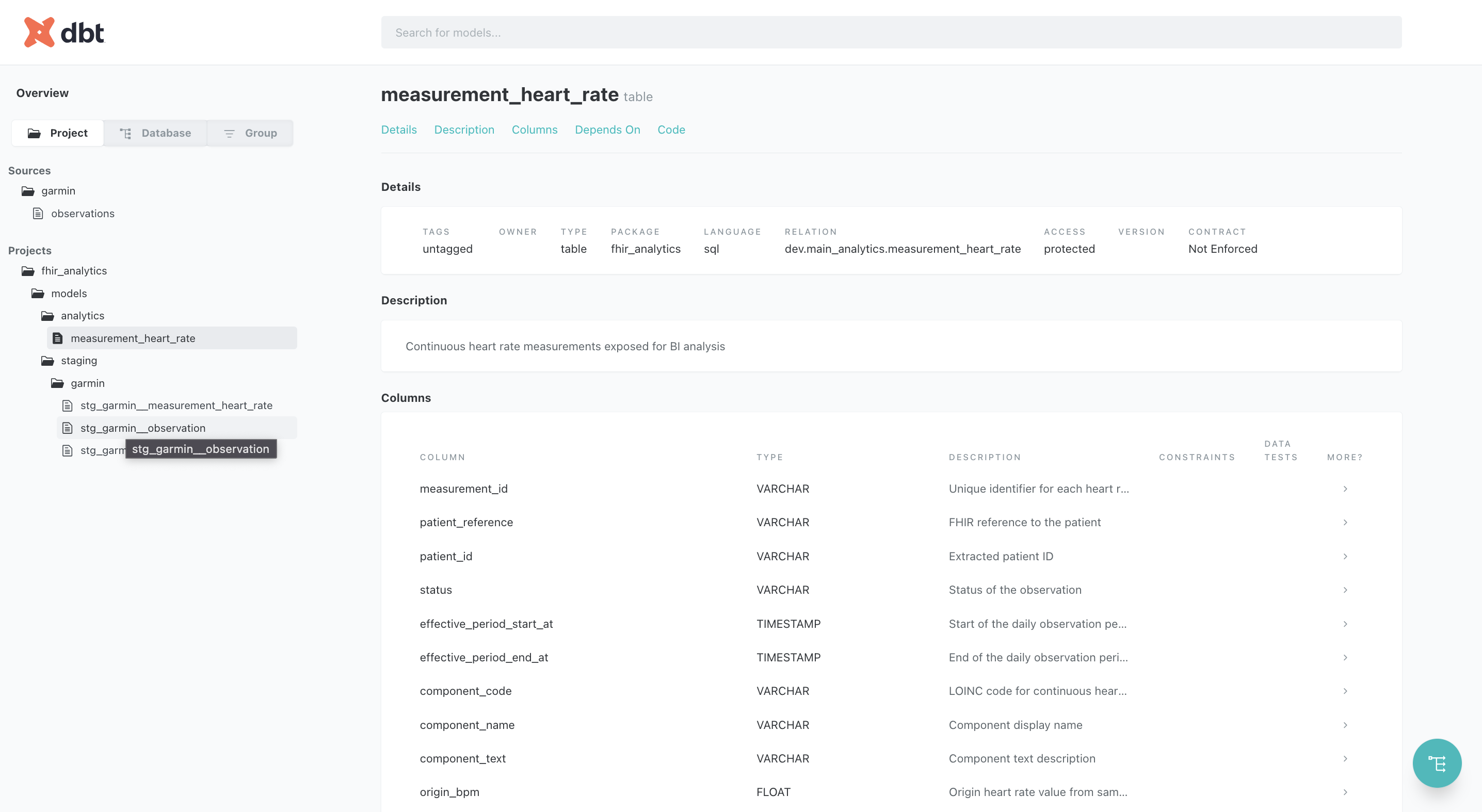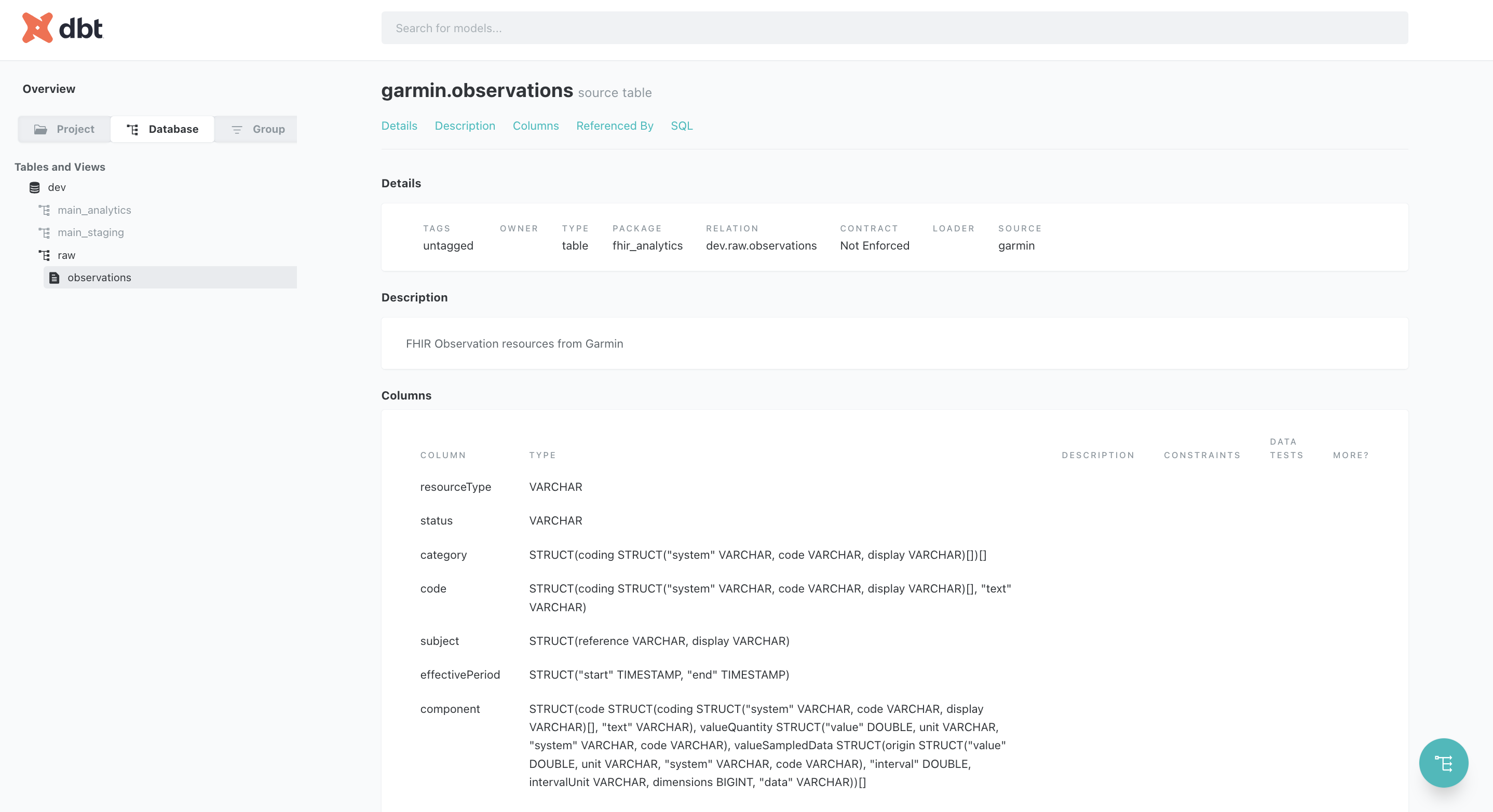 Garmin API -> local ndjson file in FHIR format -> DuckdbTransform & Test with dbt